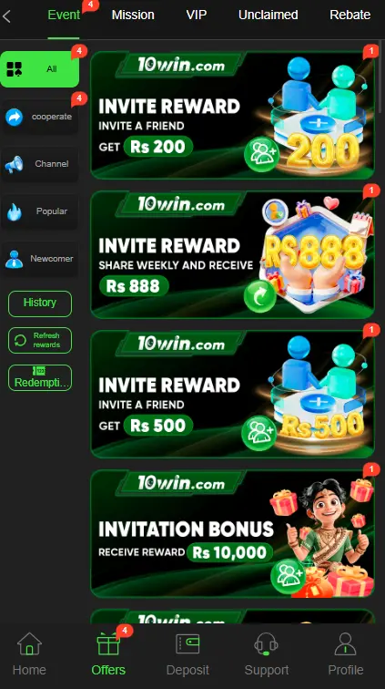There are several ways to earn money on 10Win APP: