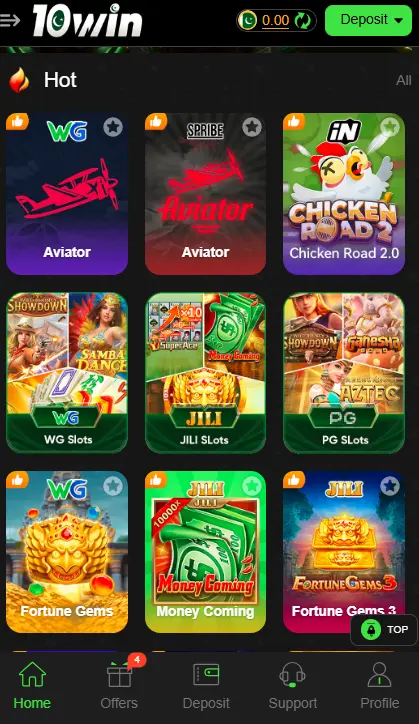 10Win APK offers a wide range of games, including: