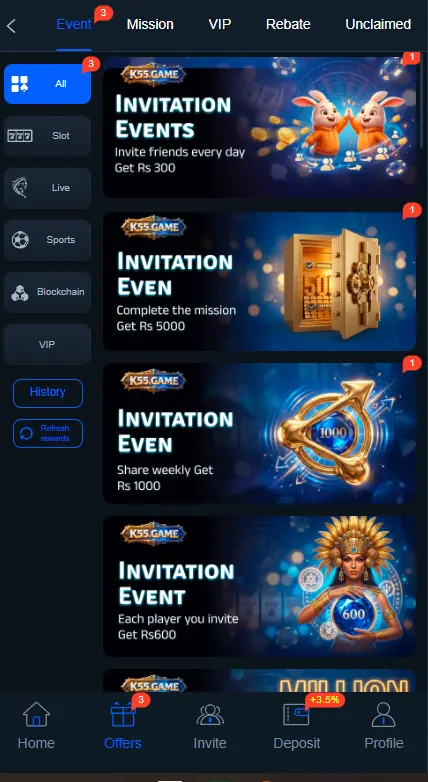 K55.APK supports instant deposits so players can add funds and start playing without delay.
