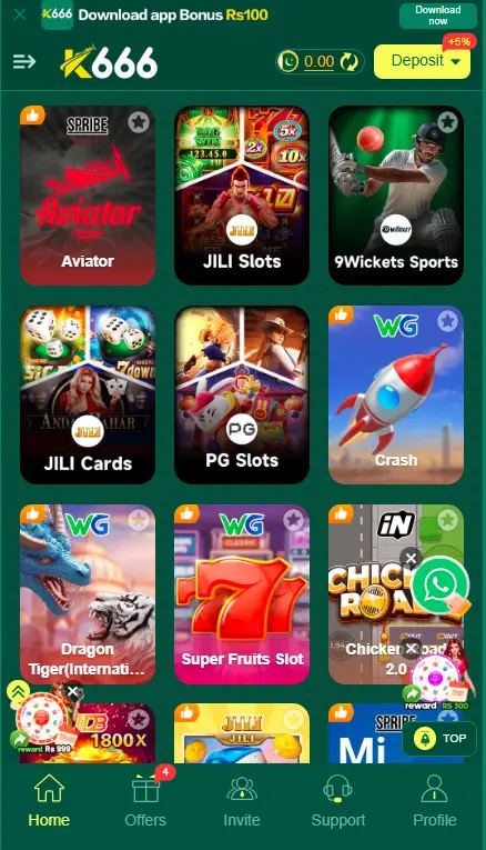 K666 casino is an online casino and betting platform that provides a wide range of games such as slots, card games, live casino games, sports betting, and color prediction games. The platform allows users to deposit money, play games, and withdraw real cash winnings easily.